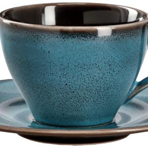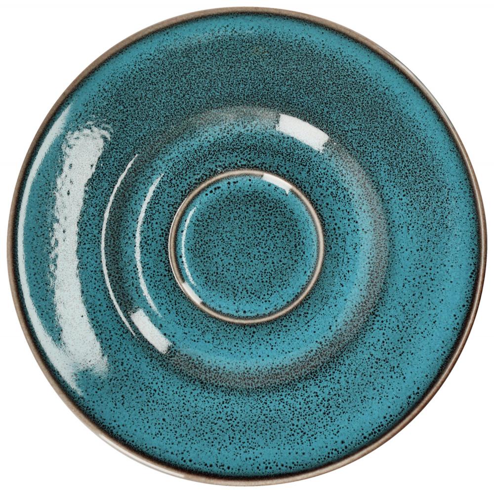 Colorful stoneware coffee saucer. With irregular edges and speckles. Each piece is unique. Dishwasher safe and microwaveable.