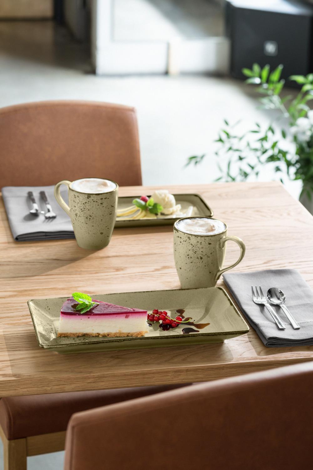 Naša nova serija Palana impresionira svojim modernim bojama i vintage izgledom. ahvaljujući nepravilno raspoređenim mrljama svaki deo je jedinstven. Može se prati u mašini za suđe i može se koristiti u mikrotalasnoj pećnici.