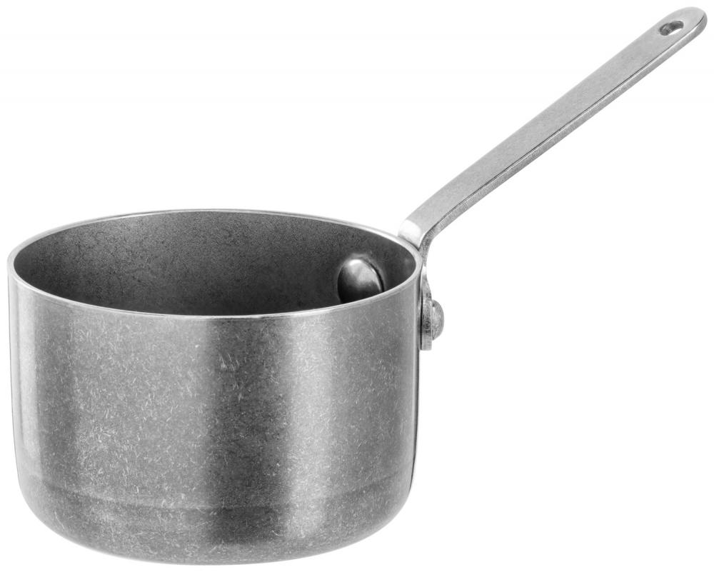 Mini lonac od hrom-nikl nerđajućeg čelika 14/4 sa efektom patiniranja. Može se prati u mašini za pranje sudova.