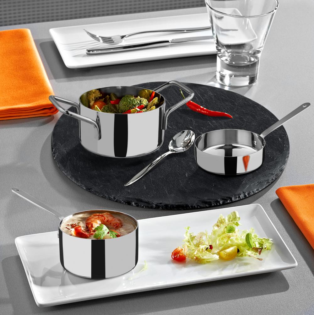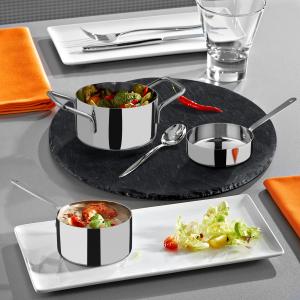 Mini lonac od nerđajućeg čelika. Idealno za pripremu ili zagrevanje malih jela, kao i za elegantnu prezentaciju vaših jela. Pogodno za sve ploče za kuvanje (osim gasnih i indukcionih). Nije pogodno za mikrotalasne pećnice.
