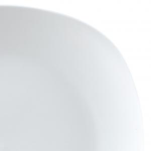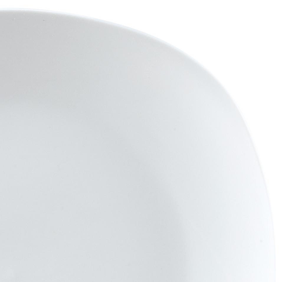 Moderni bijeli tanjiri od čvrstog hotelskog porcelana. U kvadratnom zaobljenom obliku. Bez ruba Može se prati u mašini za suđe i može se koristiti u mikrotalasnoj pećnici.