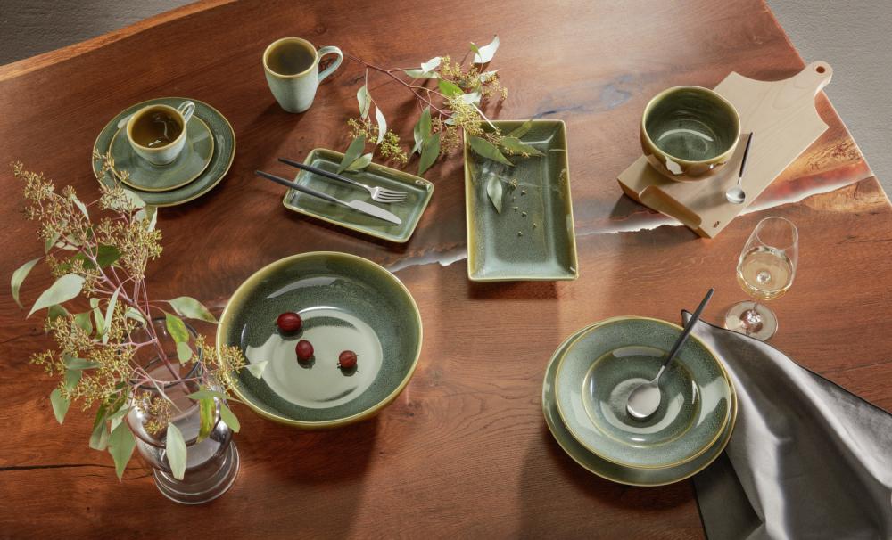 Serija inspirisana modernim bojama. Ravni i duboki tanjiri, činije i šolje izgledaju ručno rađeni sa nepravilnim ivicama - tako da nude autentičnu pozornicu za vašu hranu. Zahvaljujući Reactive Glaze-u, svaki predmet je jedinstven. Dvije trendi boje se takođe mogu kombinovati sa serijom Palana po želji.