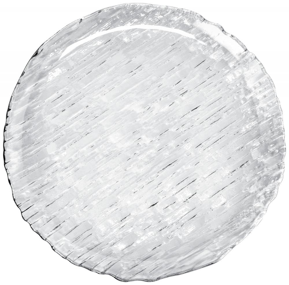 Stakleni tanjir sa reljefom u rustikalnom obliku. Može se prati u mašini za pranje sudova.