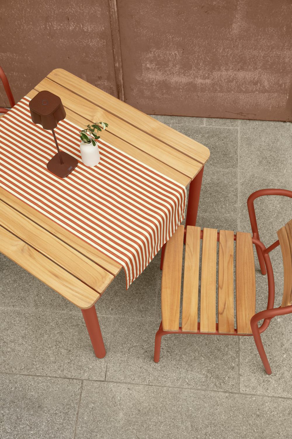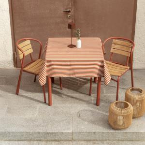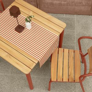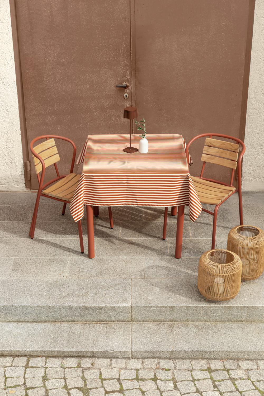 ##Outdoor tablecloth Valiano - stain-resistant and lightfast The Valiano tablecloth is the perfect choice for your outdoor area. Made from 52% polyester and 48% cotton, this table linen offers a robust quality. The striped design gives your table a fresh touch. Thanks to the acrylic surface coating, the table linen is particularly hard-wearing, stain-resistant and can be wiped clean with a damp cloth - perfect for use in sheltered outdoor areas and indoors. The high lightfastness ensures that the vibrant colours remain radiant even when exposed to sunlight. Functionality meets stylish design! * Blended fabric made from 52% polyester, 48% cotton * Weight approx. 190 g/m² * Can be customised to size * Wipeable acrylic surface coating * Stain-resistant and can be wiped off with a damp cloth * High lightfastness, colourfast even in UV radiation * For indoor and protected outdoor use Care tip: Iron on the reverse after each wash to activate the coating and ensure durability - not suitable for mangles.