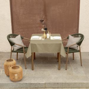 ##Outdoor tablecloth Lasolana - stain-resistant and lightfast The Lasolana outdoor tablecloth is the ideal choice for outdoor use. Made from a high-quality blend of 52% polyester and 48% cotton, it impresses with its durability and longevity. The special acrylic surface coating makes the rug particularly hard-wearing, stain-resistant and easy to wipe clean with a damp cloth - perfect for protected outdoor areas and indoor use. The simple, monochrome design in fresh, summery colours provides a lively accent on any table. Thanks to their high lightfastness, the colours remain brilliant and vibrant even after prolonged exposure to sunlight. Function meets stylish design! * Blended fabric made of 52% polyester, 48% cotton * Weight approx. 190 g/m² * Acrylic surface coating for stain and water repellence * Stain-resistant and can be wiped clean with a damp cloth * High light fastness, colourfast even under UV radiation * Processing with 1cm standard seam * For indoor and protected outdoor use * Can be customised to desired size Care tip: Iron on the reverse after each wash to activate the coating and ensure durability - not suitable for mangles.
