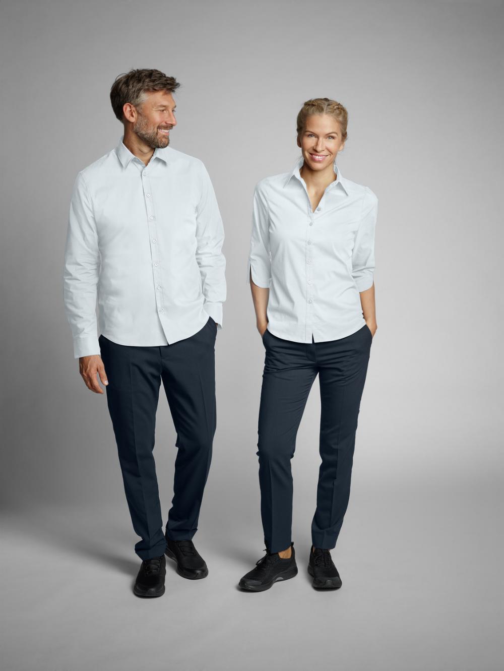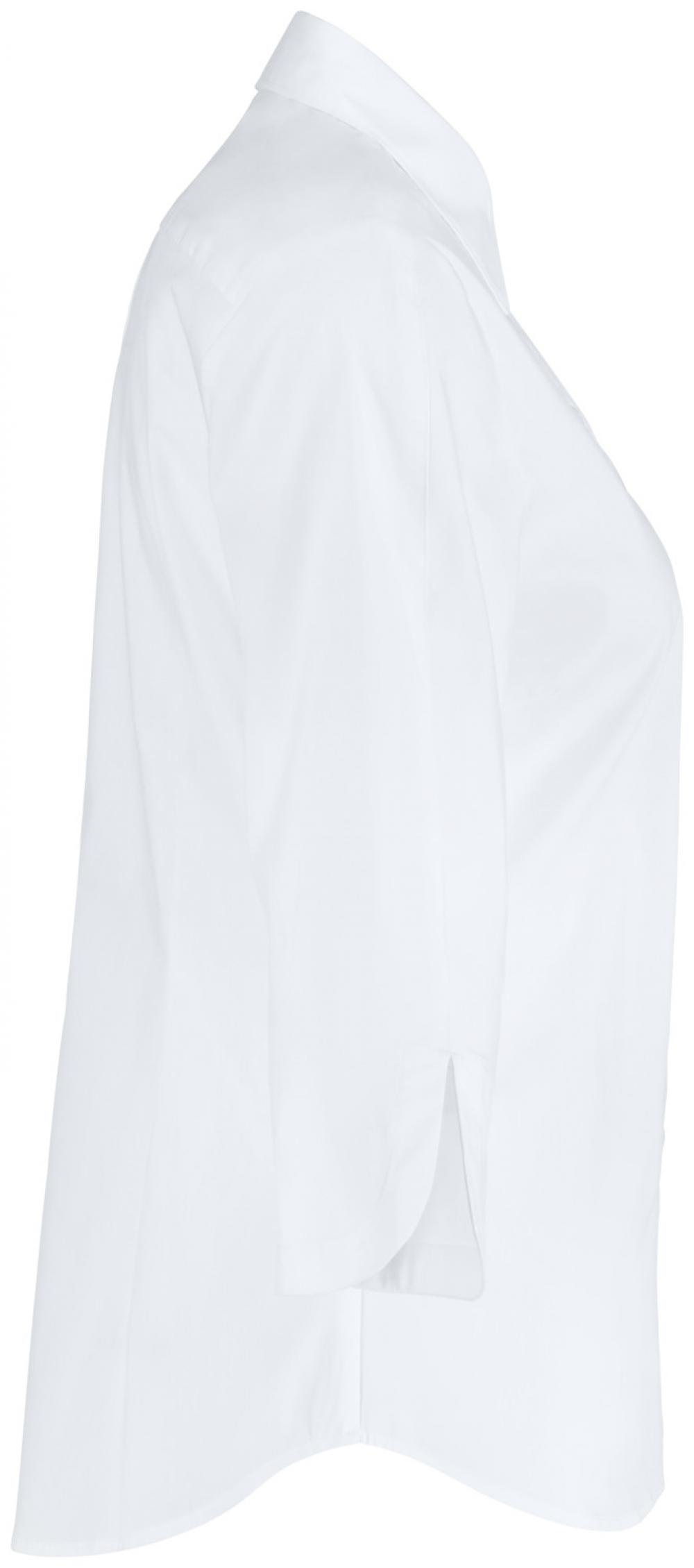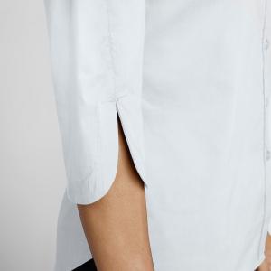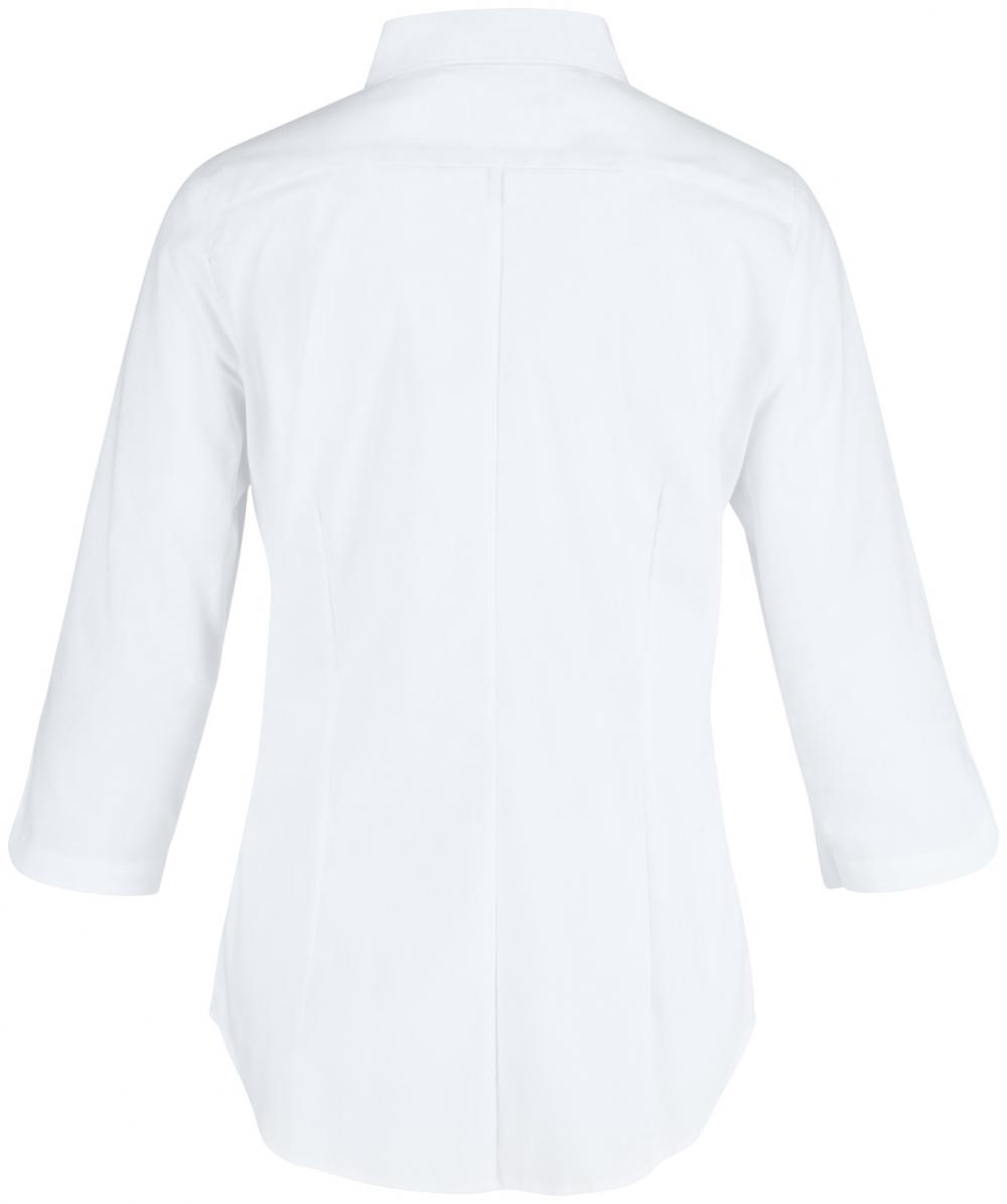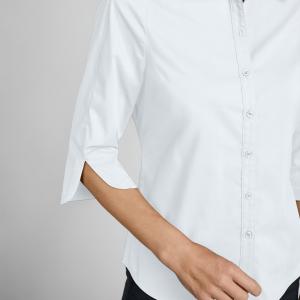 Klasična ženska bluza s rukavima tri četvrtine, vidljivom dugmetom i košuljskim ovratnikom.